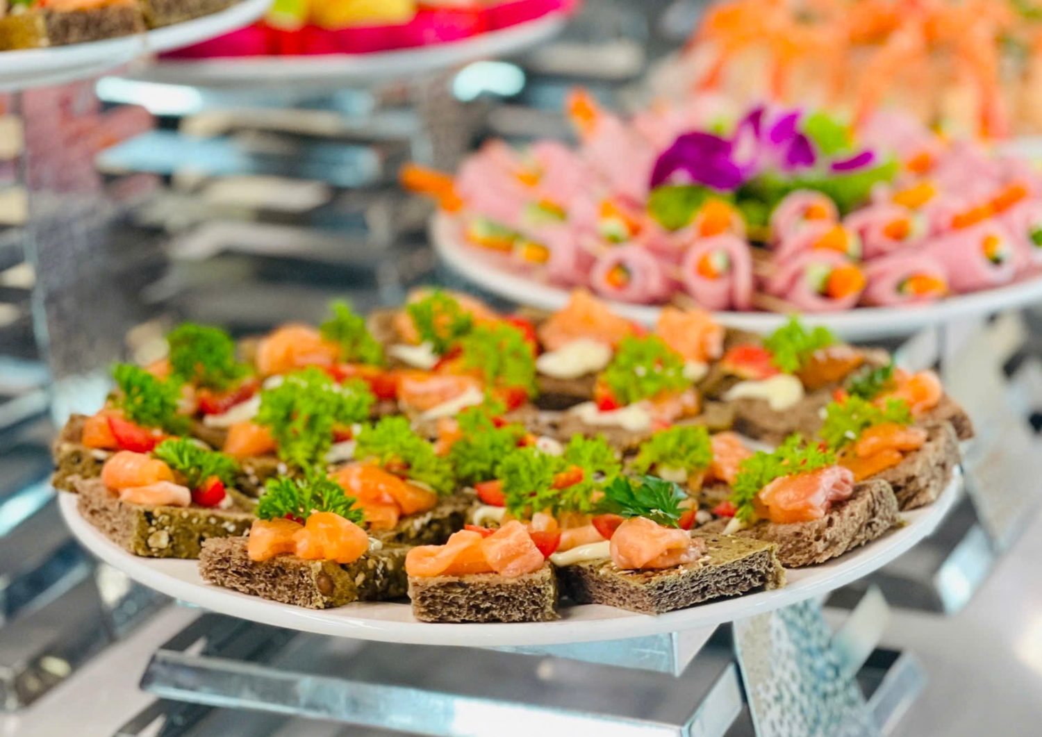 Chúng tôi xây dựng thực đơn tiệc hội thảo quốc tế với sự đa dạng và tinh tế, kết hợp hài hòa giữa các món ăn truyền thống Việt Nam đặc sắc và các hương vị ẩm thực quốc tế được ưa chuộng. Thực đơn có thể được tùy chỉnh linh hoạt để phù hợp với khẩu vị và yêu cầu đặc biệt của khách mời đến từ nhiều quốc gia khác nhau.